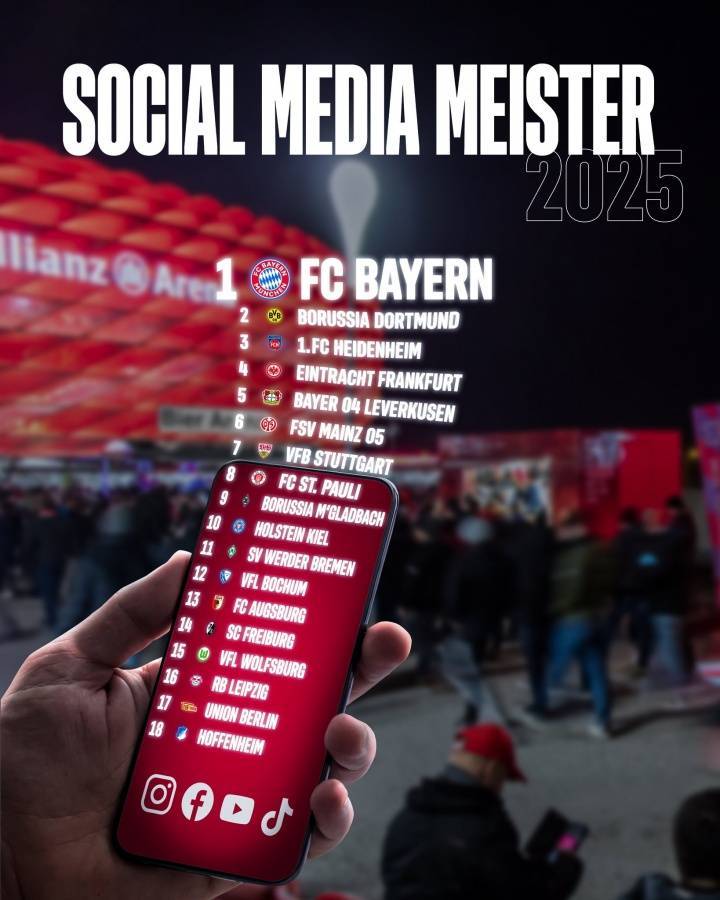 IFI评估了本赛季德甲18支俱乐部在Instagram、Facebook、YouTube和TikTok上的社交媒体表现,重点关注互动量和增长率,同时分析了粉丝数、发帖频率和视频的传播效果。